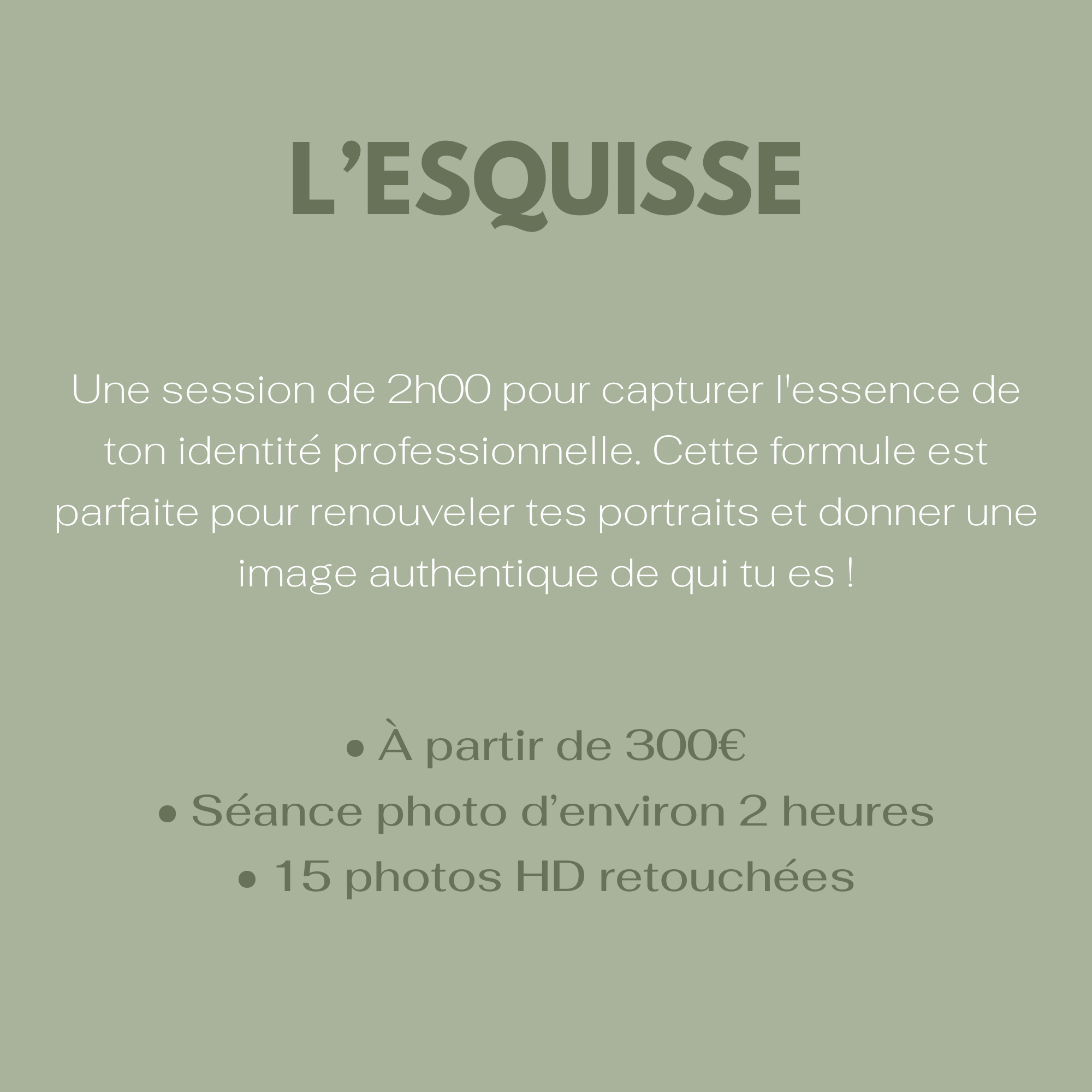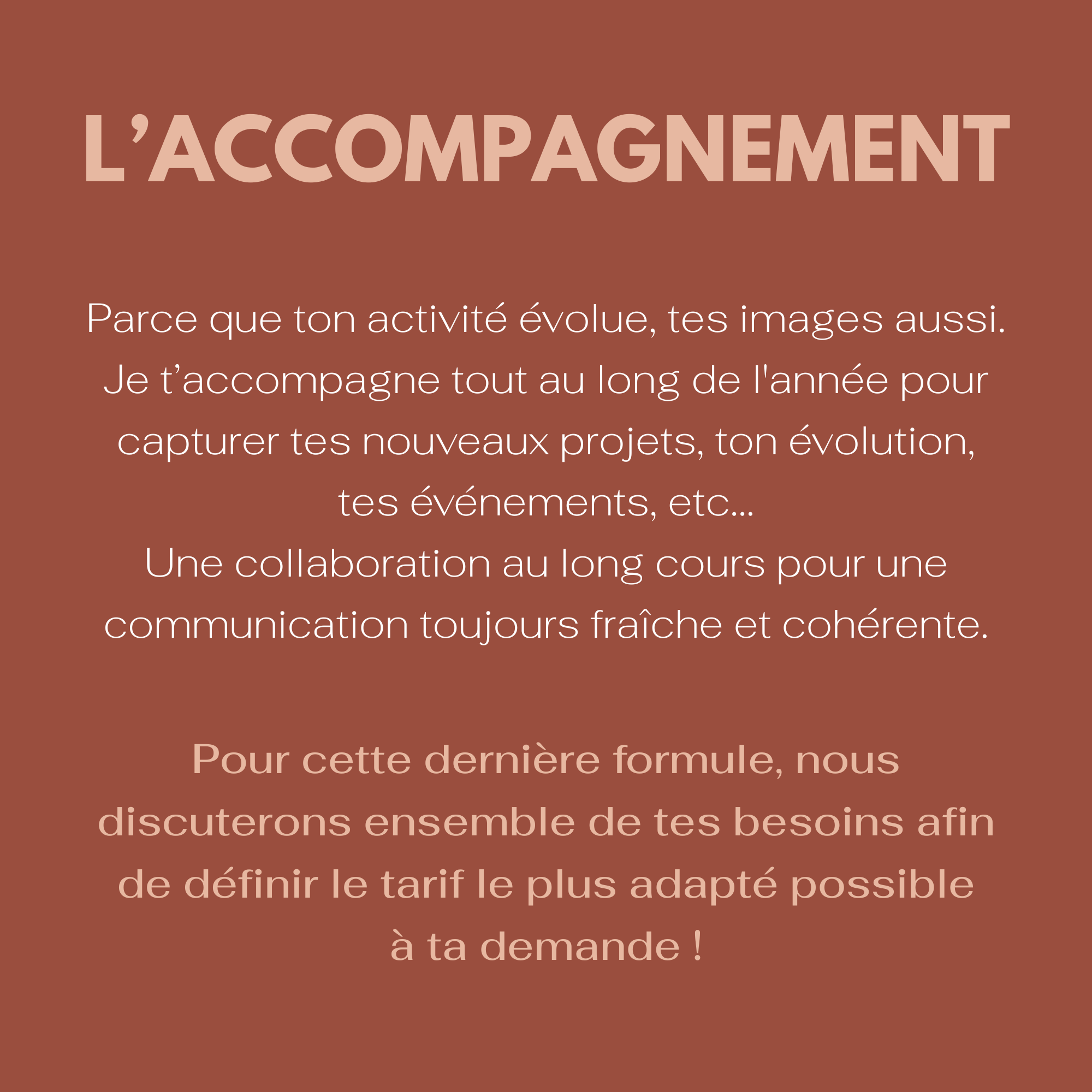 Avant que tu te lances dans la lecture de mes offres, sache que dans n’importe laquelle des formules ci-dessous, il sera possible d’ajuster en fonction de ta demande. Mon but reste avant tout que la séance te ressemble !